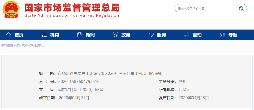 為更好發揮計量比對在保障量值準確一致、支撐計量事中事后監管和提升計量技術機構能力等方面的重要作用,通過組織征集、形式審查和專家評審等,從各單位申報項目中確定29項為2020年國家計量比對項目。