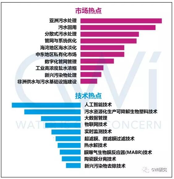 而在技術方面,數字化智慧化的前沿技術依然霸占榜首,而利用污水資源化生產可降解生物塑料也躍居第二,膜技術(包含低壓膜技術、膜生物反應器與物及陶瓷膜技術等)同樣穩居榜中。