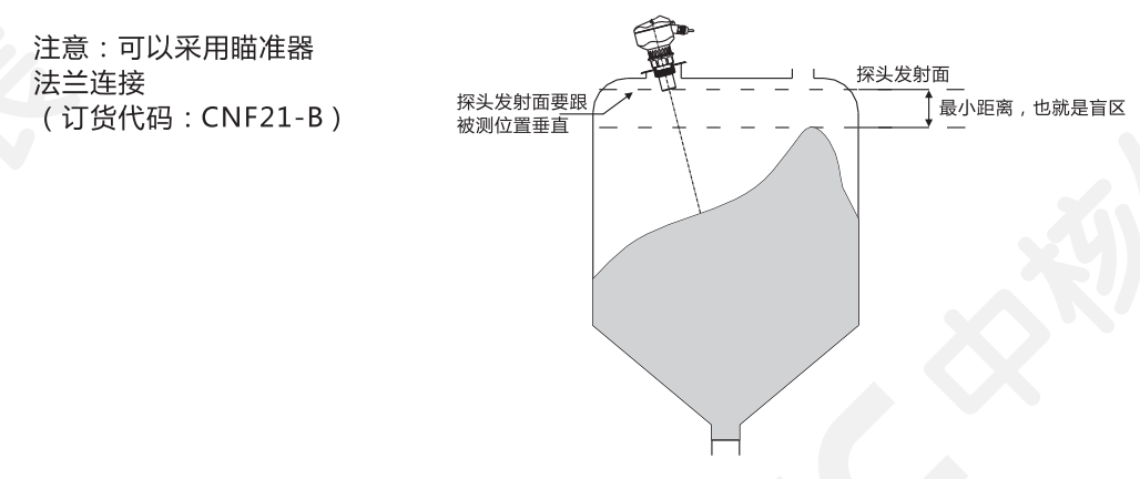 5、若最高物位不能避開盲區,可以增加一段接管來解決;