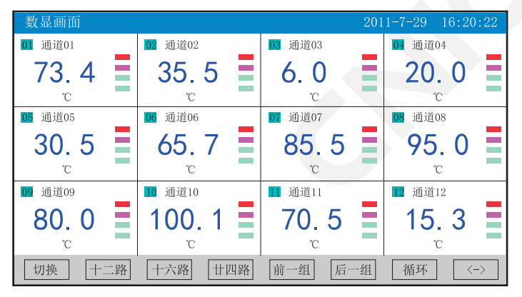 5、棒圖畫面:以棒圖的形式顯示測量值,同時還可顯示通道位號、工程單位及報警狀態等信息。