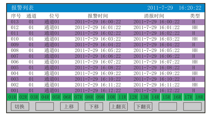 3、報警列表:顯示最近的通道報警時間、消報時間及報警狀態等信息。