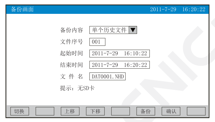 4、備份畫面:可通過設定起始時間和結束時間來備份這段時間的數據。