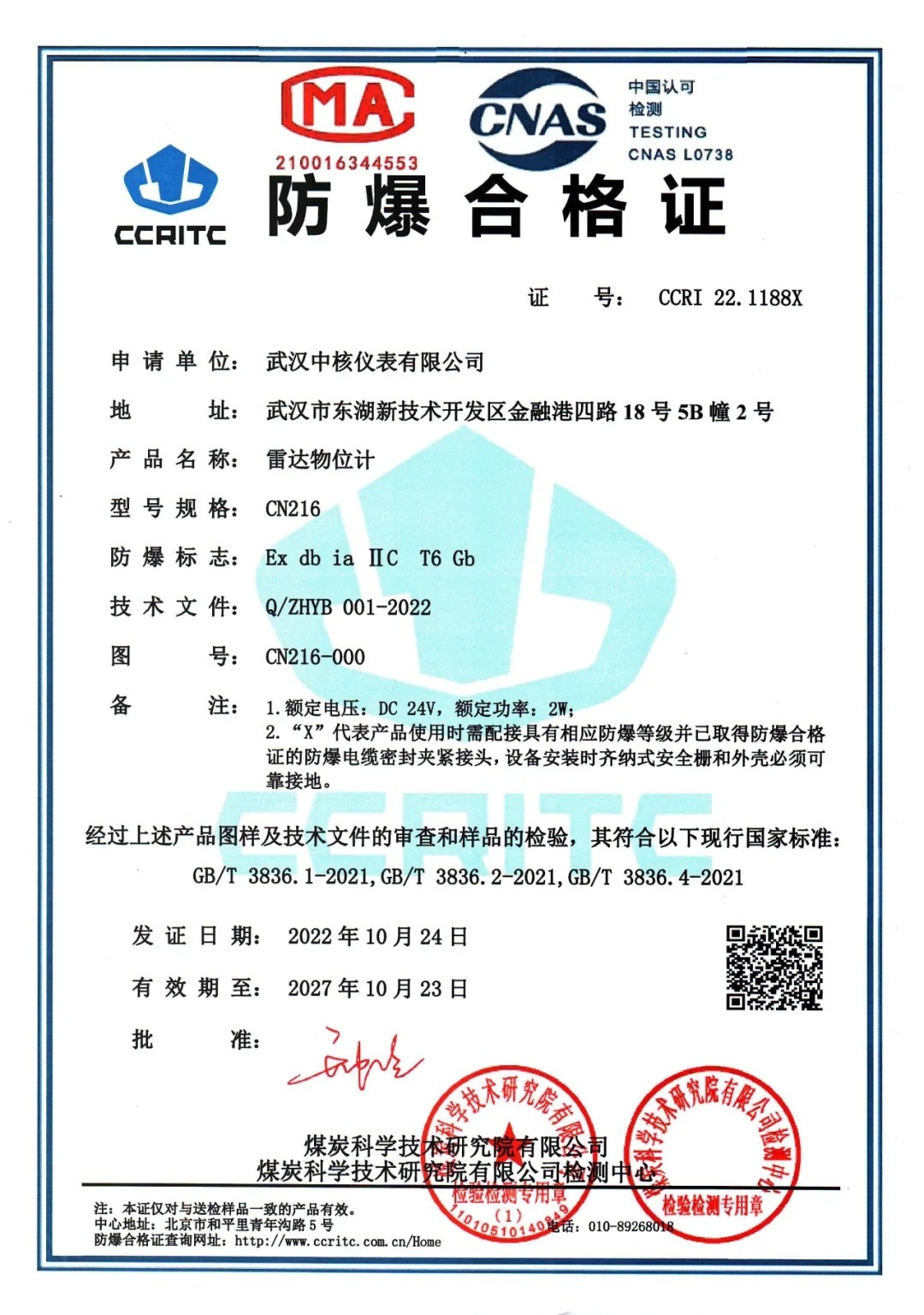 中核儀表為該企業生產制造過程提供CN117型ph計、CN311型電磁流量計、CN216型雷達液位計等儀表產品及配套設備,產品均已取得防爆認證,嚴密監測生產過程中的各類指標,高效完成生產需求。
