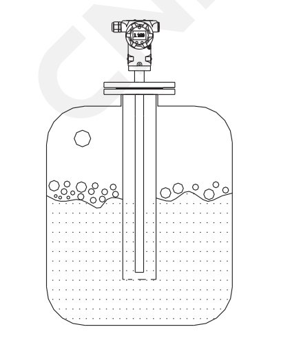 直接安裝 1.大部分使用場(chǎng)合 2.液面波動(dòng)不劇烈、液面無(wú)大量泡沫層 3.纜式、桿式適合 *容器是金屬的,直接利用容器殼體接地(測(cè)量地)