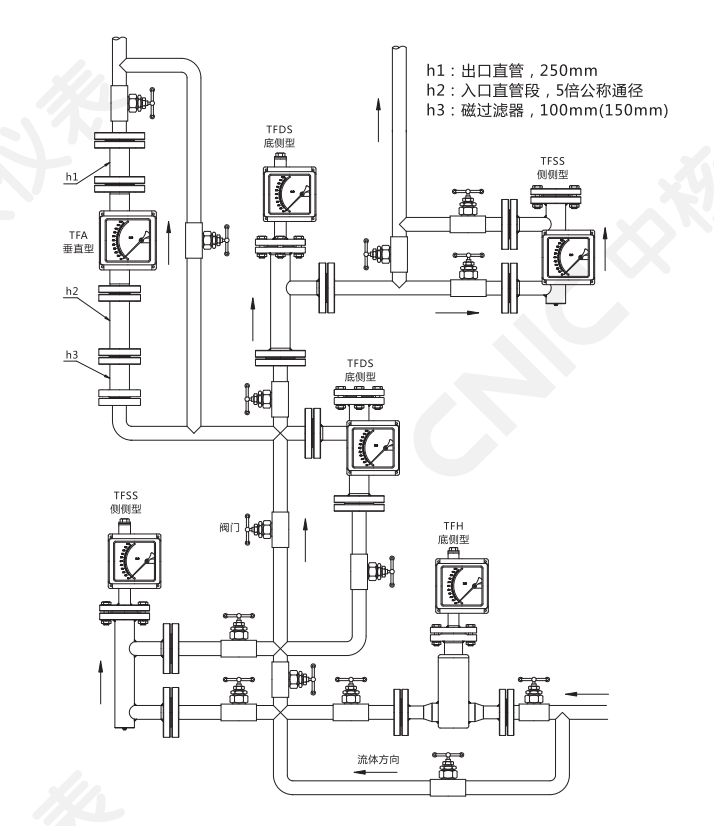 2. 如果介質中含有鐵磁性顆粒,應在流量計入口前安裝磁過濾器。